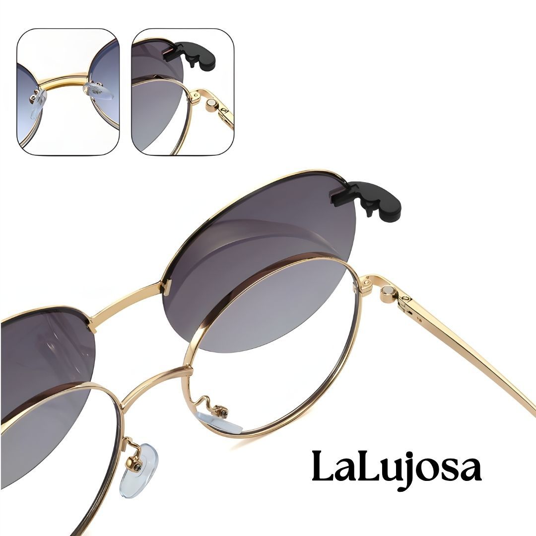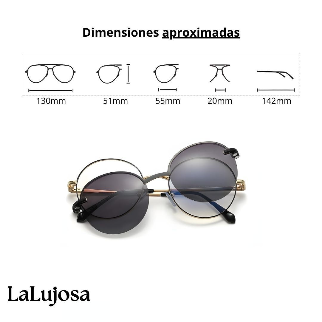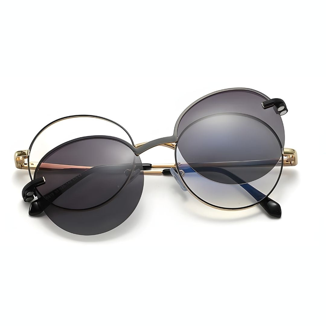 Descubre el estilo y la versatilidad de las Lentes 2 en 1 Clip-On Redondas para Mujer en Negro y Dorado Vintage. Diseño elegante y sofisticado, estas lentes ofrecen una solución práctica para el día a día, permitiéndote adaptarte fácilmente a cualquier situación.