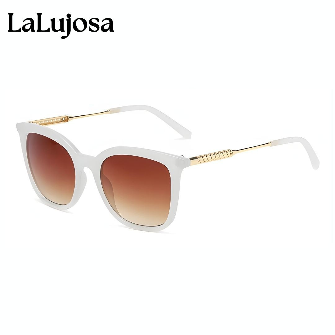 - Estilo Moderno: Lentes de sol cuadradas en blanco y dorado que realzan tu look con glamour y elegancia.