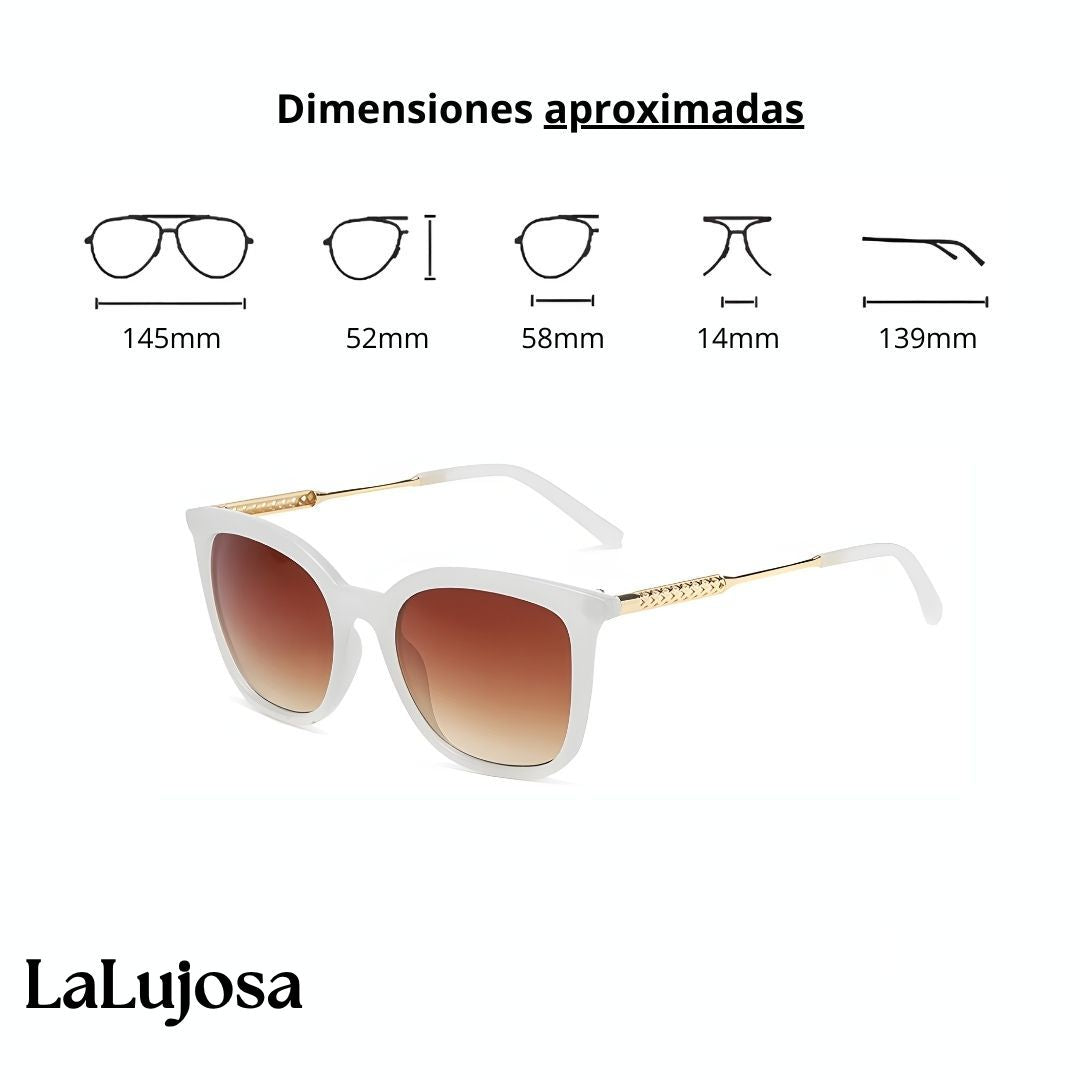Lentes de Sol Cuadradas para Mujer en Blanco y Dorado Irresistible