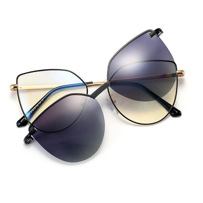 Luce increíble todos los días con las Lentes 2 en 1 Ojo de Gato Clip-On para Mujer en Negro Glamoroso, ideales para uso diario y nocturno. Su diseño elegante te da un toque moderno mientras cuidan tus ojos de la luz azul de las pantallas.