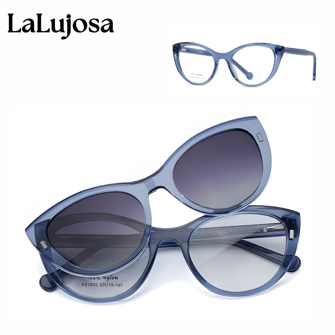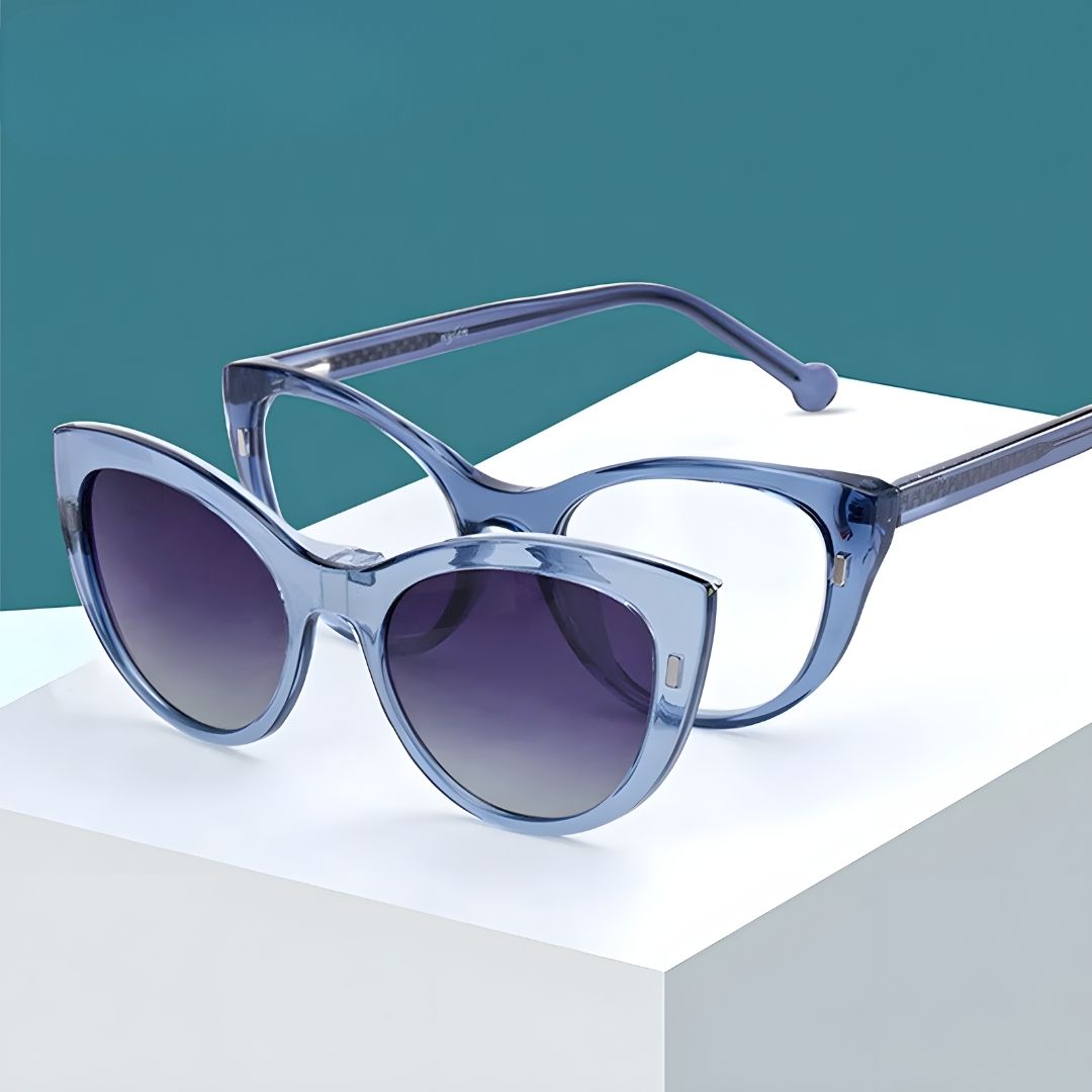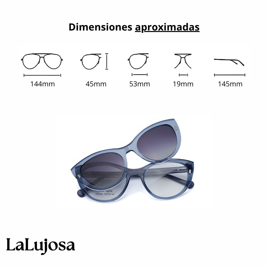 Lentes ojo de gato azules 2 en 1 con clip solar