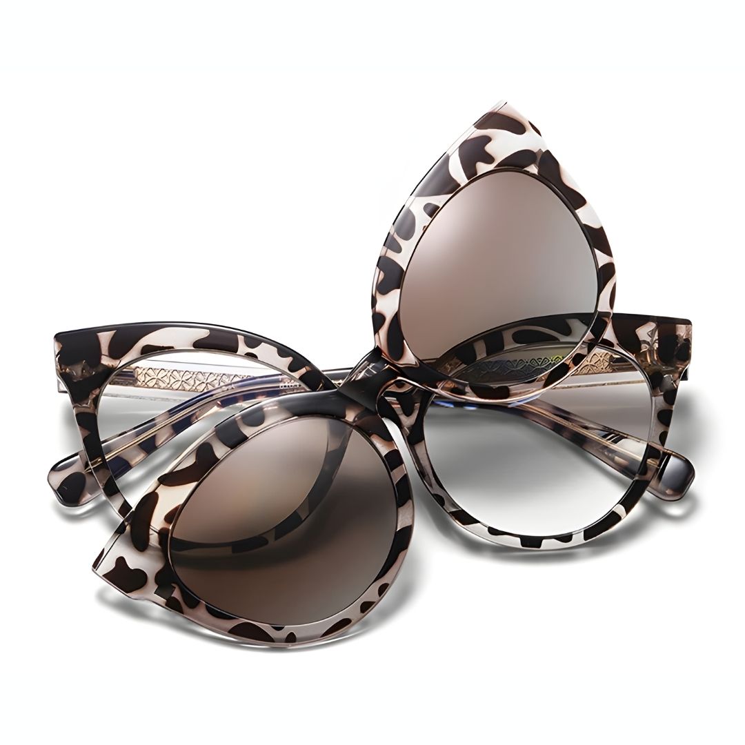 Lentes 2 en 1 ojo de gato para mujer en leopardo con clip solar moderno