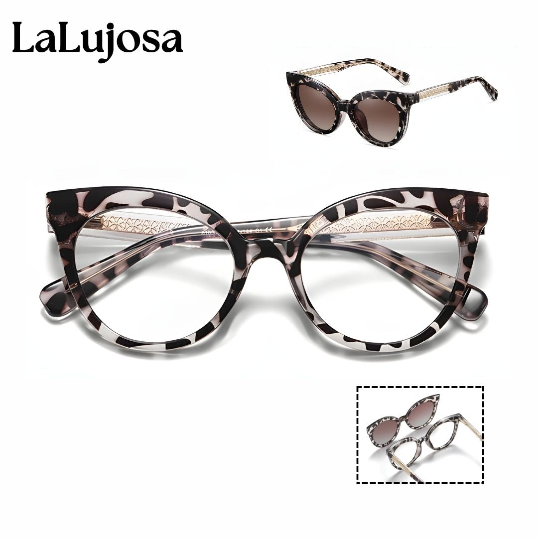 - Montura leopardo con clip solar magnético, sofisticada y versátil.