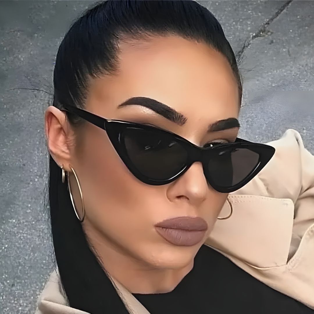 Lentes de Sol Ojo de Gato para Mujer en Negro Glamoroso