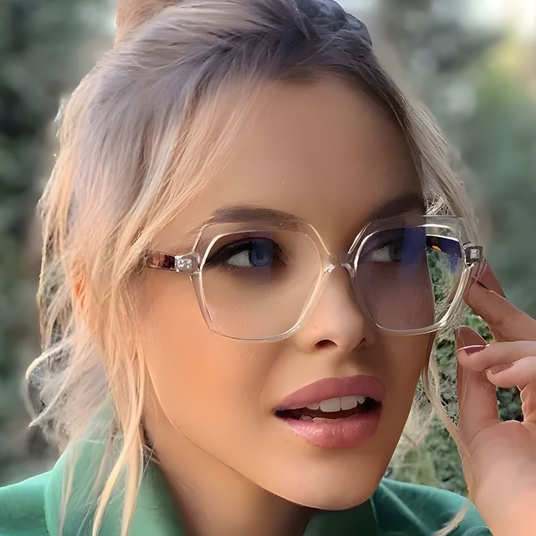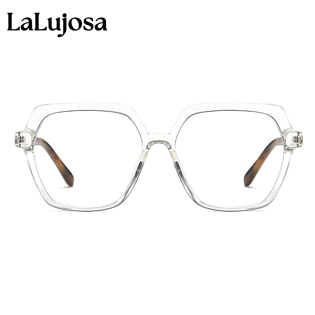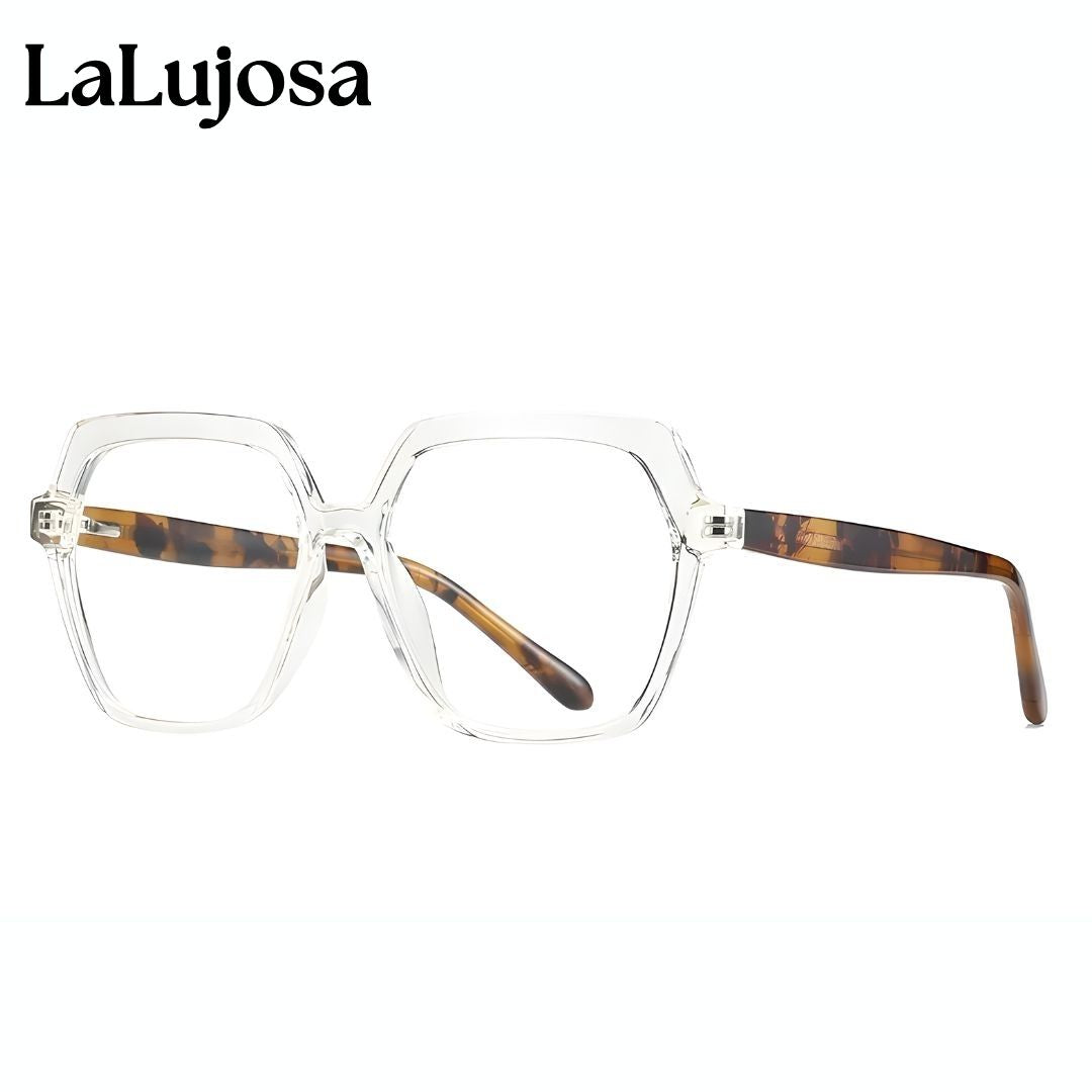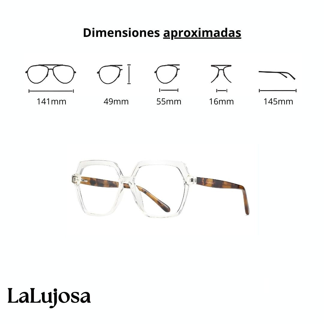 Descubre la elegancia con nuestras Lentes Cuadradas para mujer en tono transparente y estampado sofisticado.