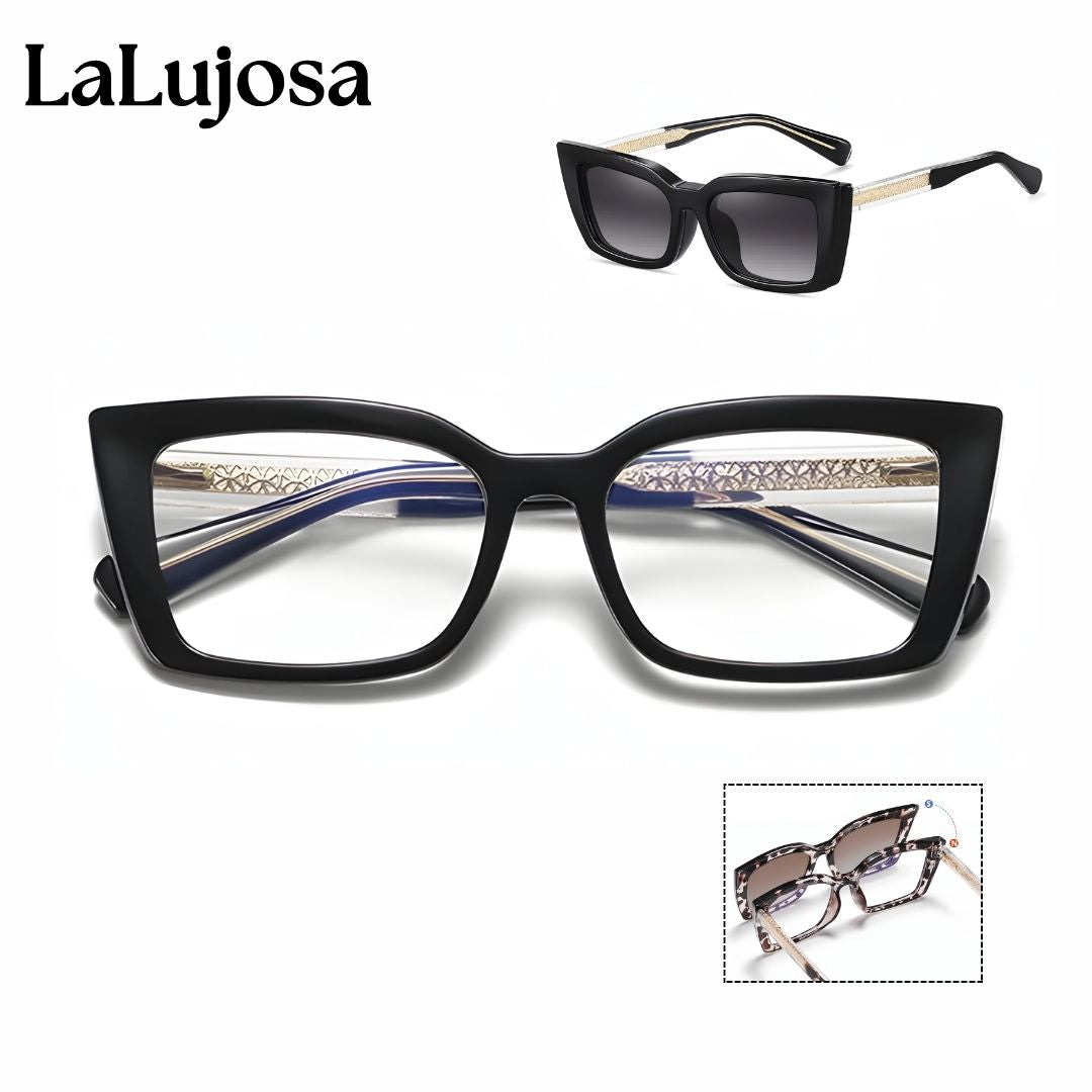 Un diseño cuadrado negro clásico que combina con todo. Elegancia sutil y protección visual para el uso diario.
