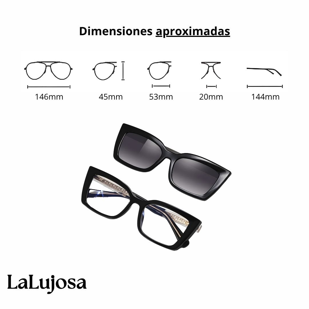 Lentes negros 2 en 1 cuadrados con clip solar y protección azul