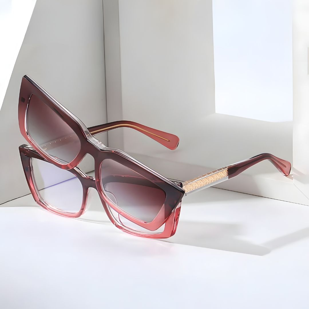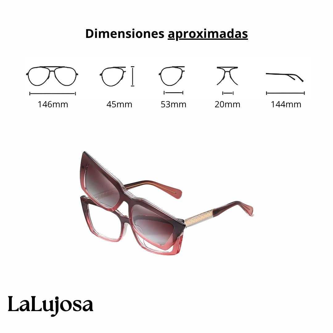 Lentes cuadradas 2 en 1 color rojo degradado con filtro azul
