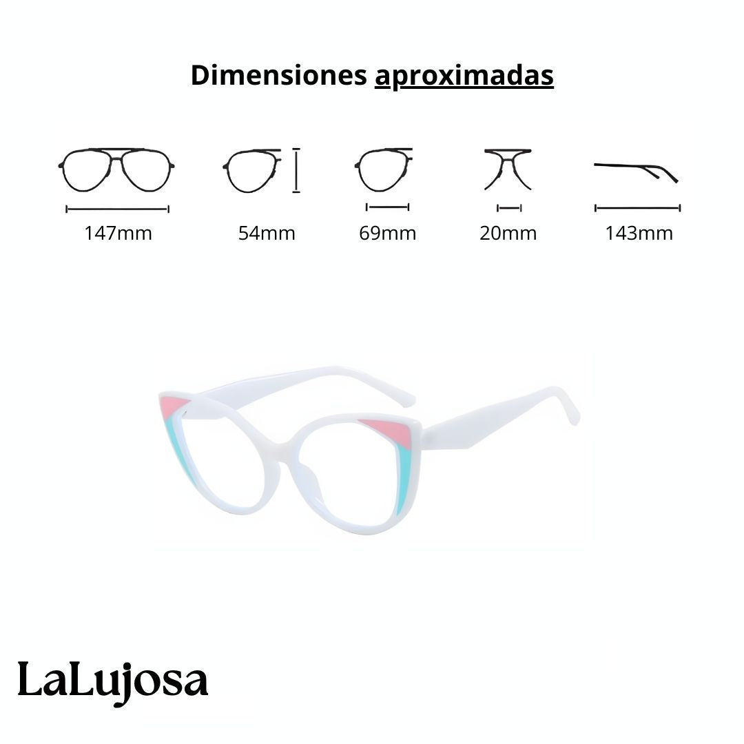 Su estilo ojo de gato realza tu look mientras las lentes anti luz azul cuidan tu vista, reduciendo el cansancio visual en el uso diario frente a pantallas.