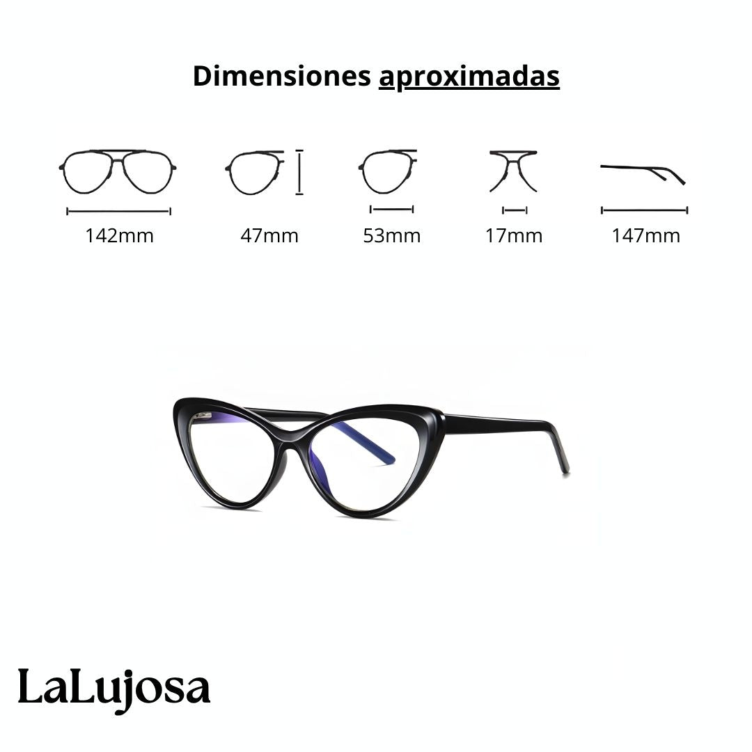 - Montura ojo de gato en negro, clásica, sofisticada y poderosa.