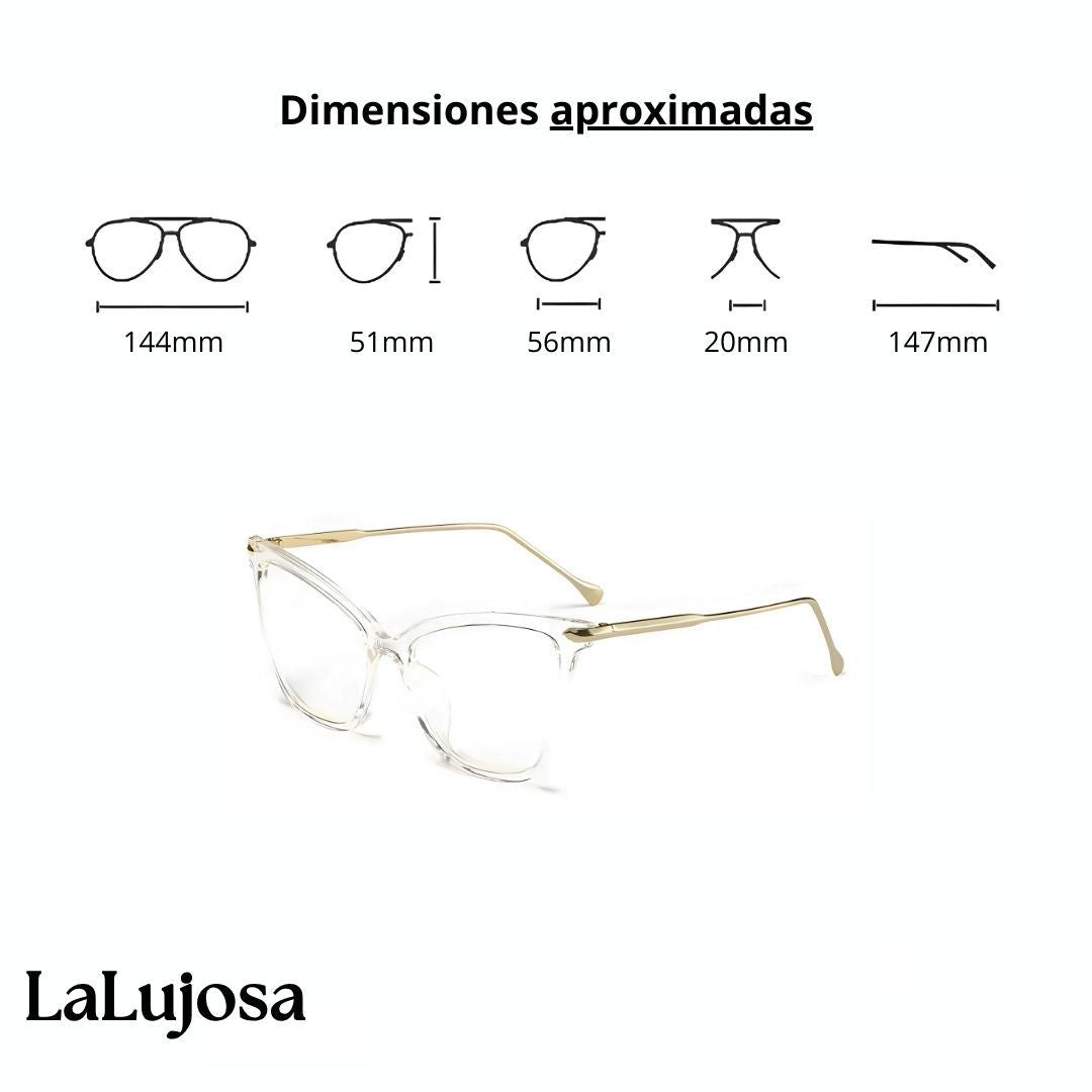 Estilo moderno y sofisticado con diseño ojo de gato que resalta las facciones.