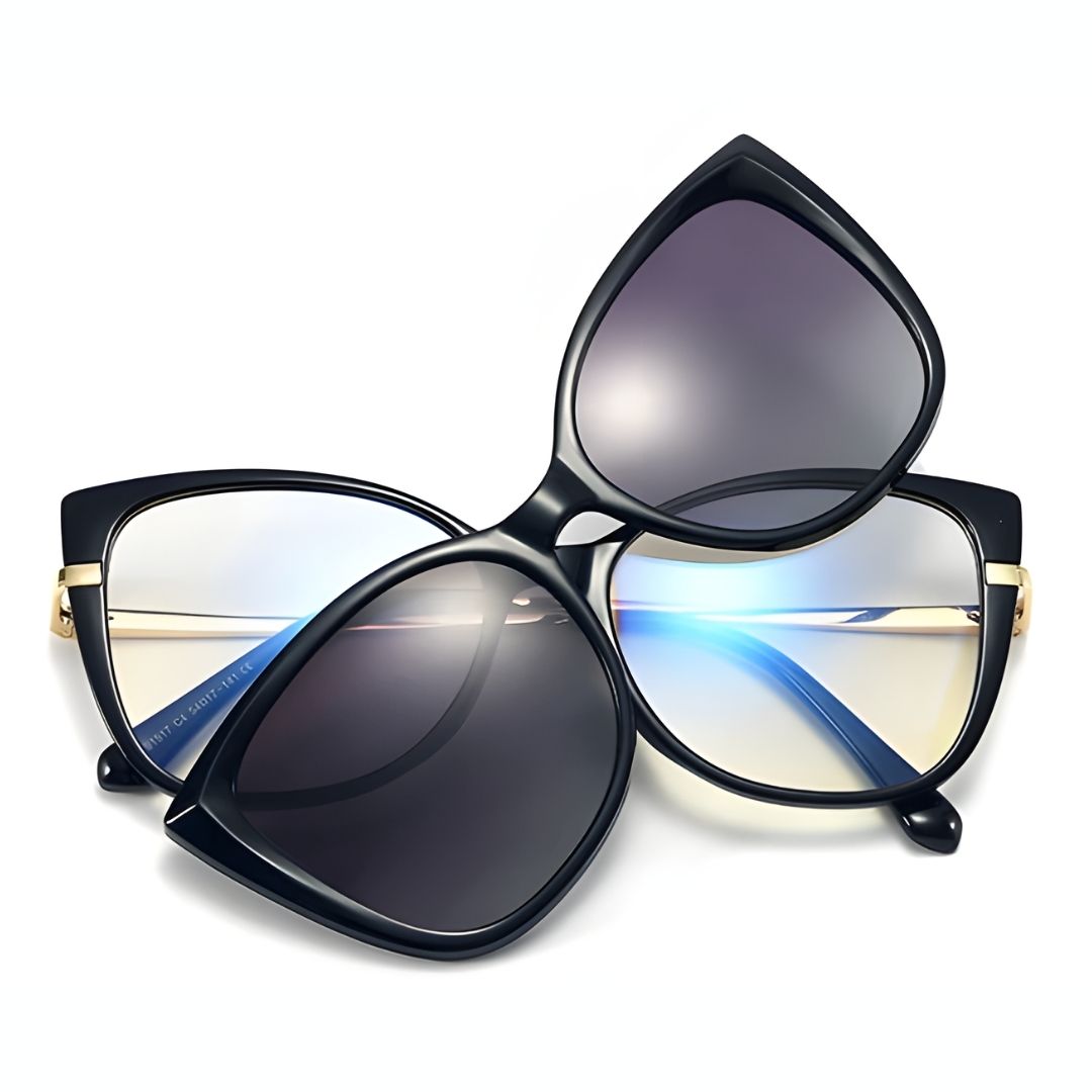 Descubre las Lentes 2 en 1 Clip-On Ojo de Gato para Mujer en Negro Casual, ideales para el día a día. Su diseño moderno y práctico te permite usar lentes ópticos y añadir lentes de sol en segundos.