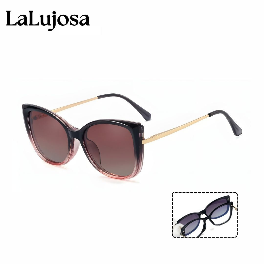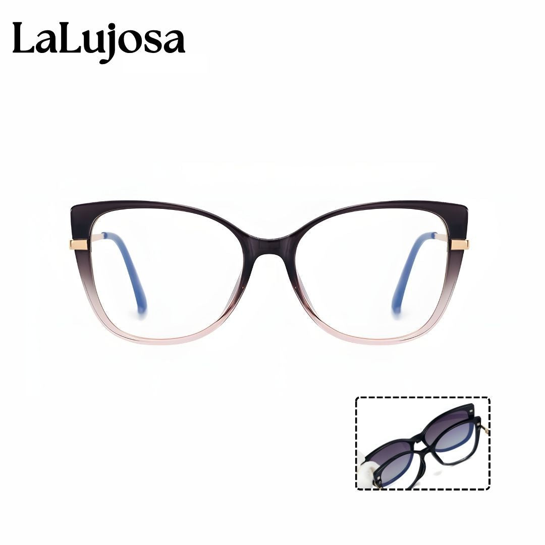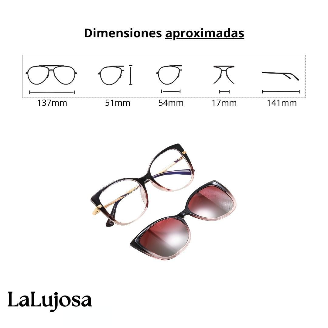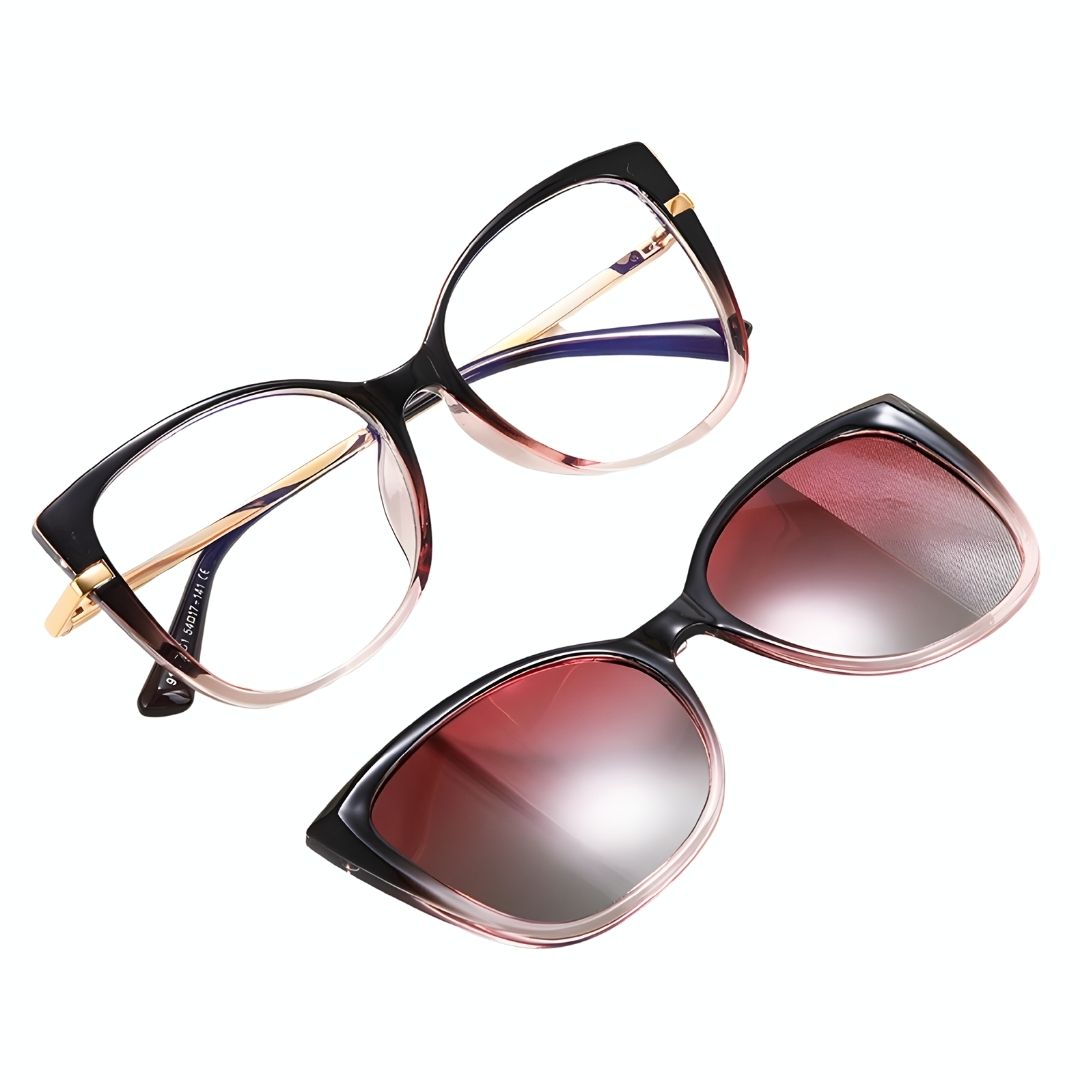 Luce un estilo moderno con los Lentes 2 en 1 Clip-On Ojo de Gato para Mujer en Rosa Casual, ideales para el uso diario. Su diseño versátil permite usar las lentes transparentes o añadir el clip-on de sol fácilmente.