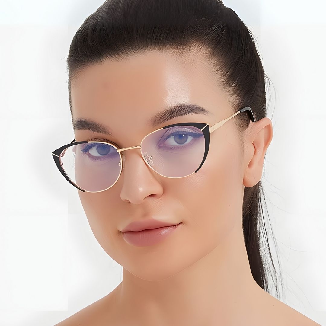 Lentes Ojo de Gato para Mujer en Negro Moderno Anti Luz Azul