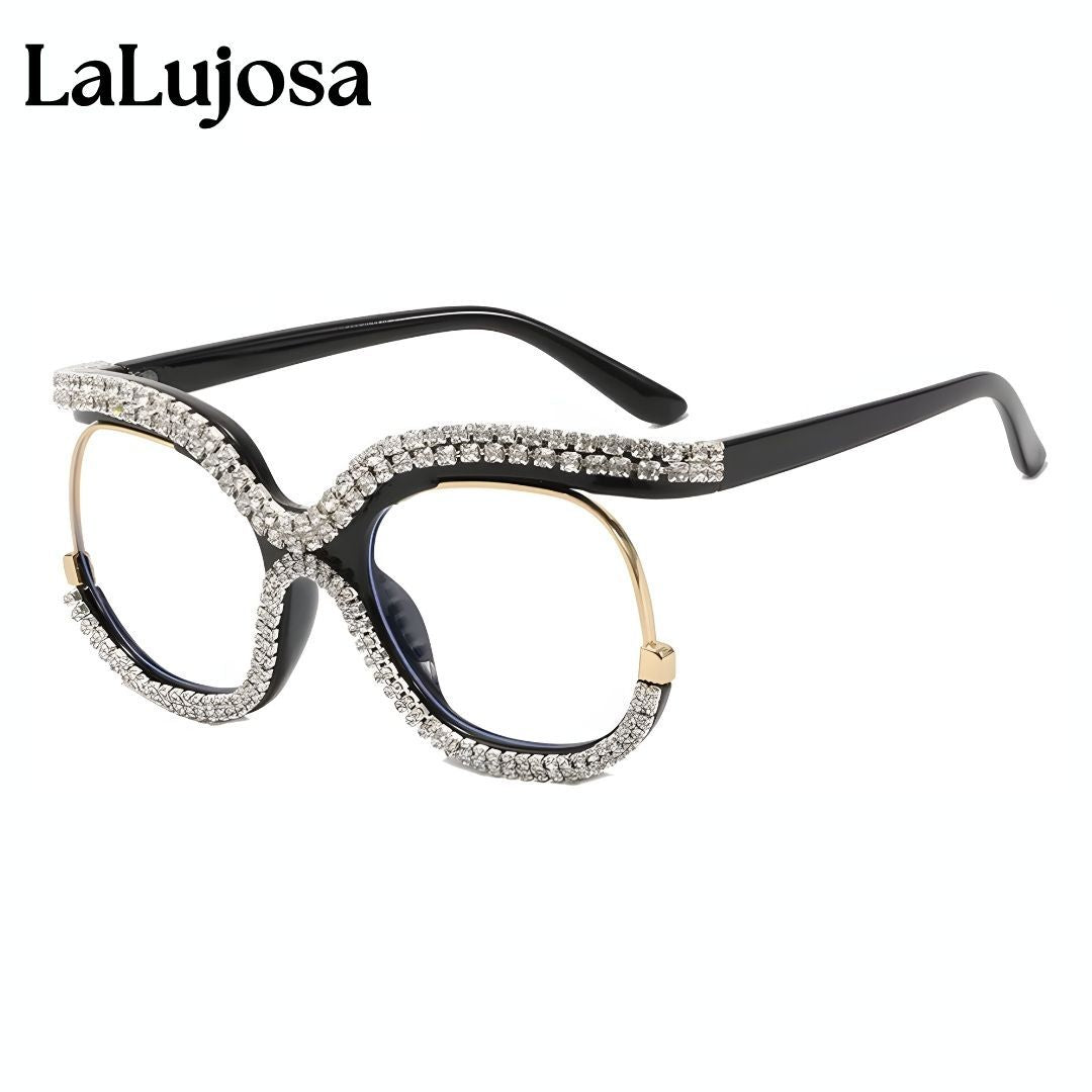 Estilo Único: Gafas cuadradas en negro con brillo para un look elegante y sofisticado.