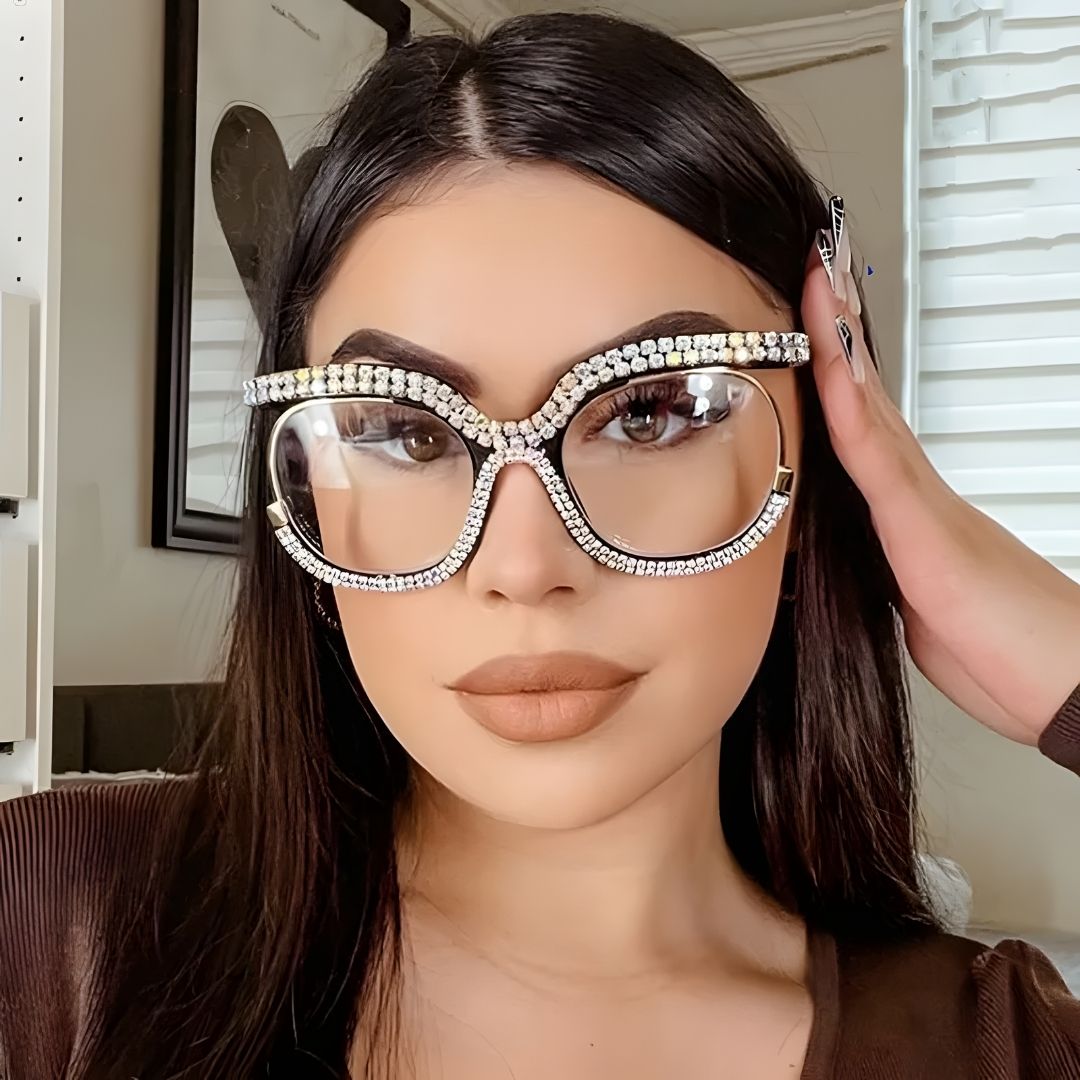 Deslumbra con estilo único usando nuestras Lentes Cuadradas para Mujer en Negro con Brillo y contra la Luz Azul. Diseño elegante y sofisticado para destacarte.