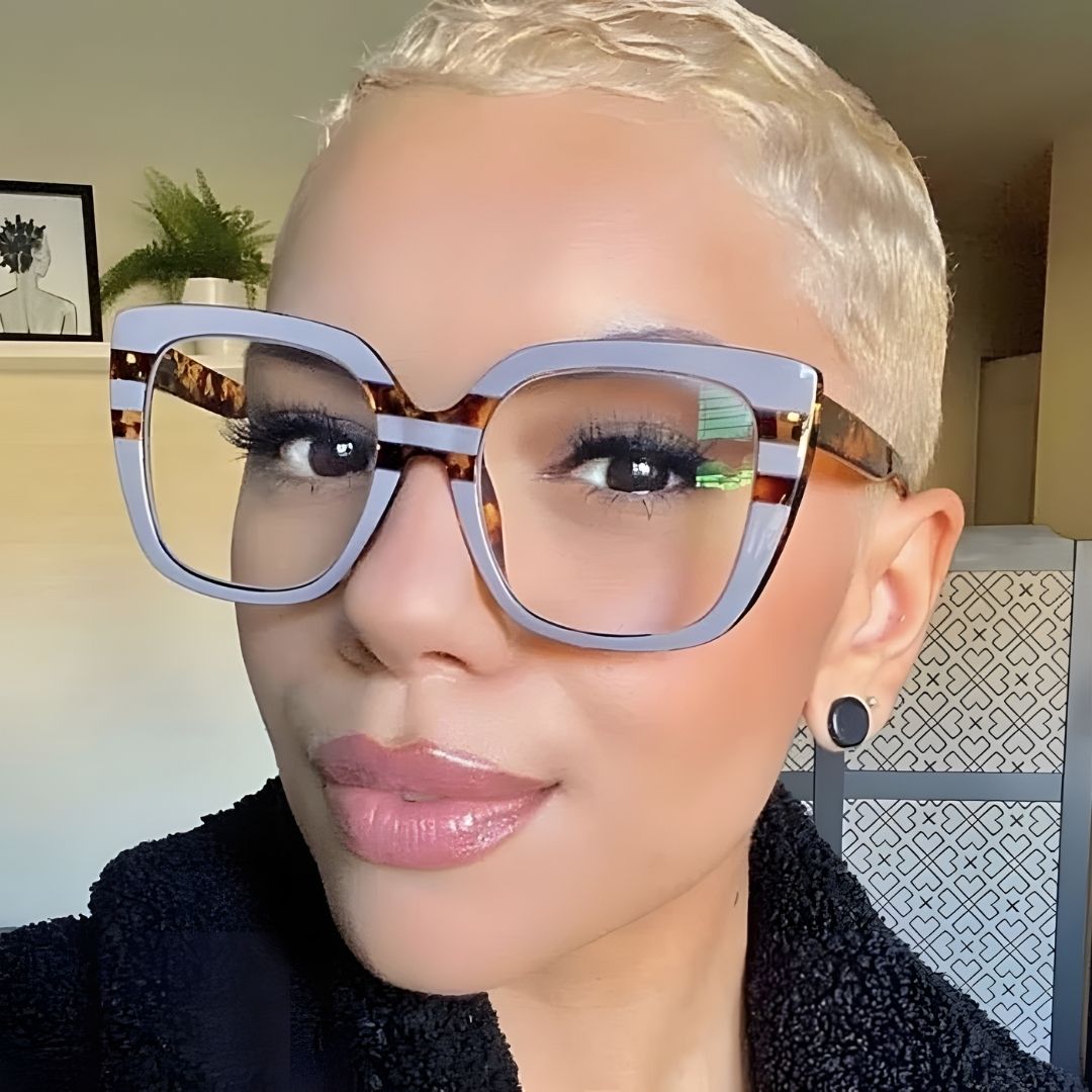 Lentes cuadradas en tono azul suave con detalles carey, ideales para mujeres que buscan comodidad visual y un diseño actual. Su montura ligera se adapta al rostro y acompaña tu rutina diaria.