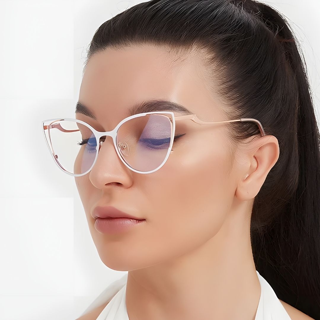 Resalta tu estilo con estos lentes ojo de gato en blanco chic. Su diseño elegante y moderno te hará brillar, mientras su protección contra luz azul cuida tu vista con comodidad todo el día.
