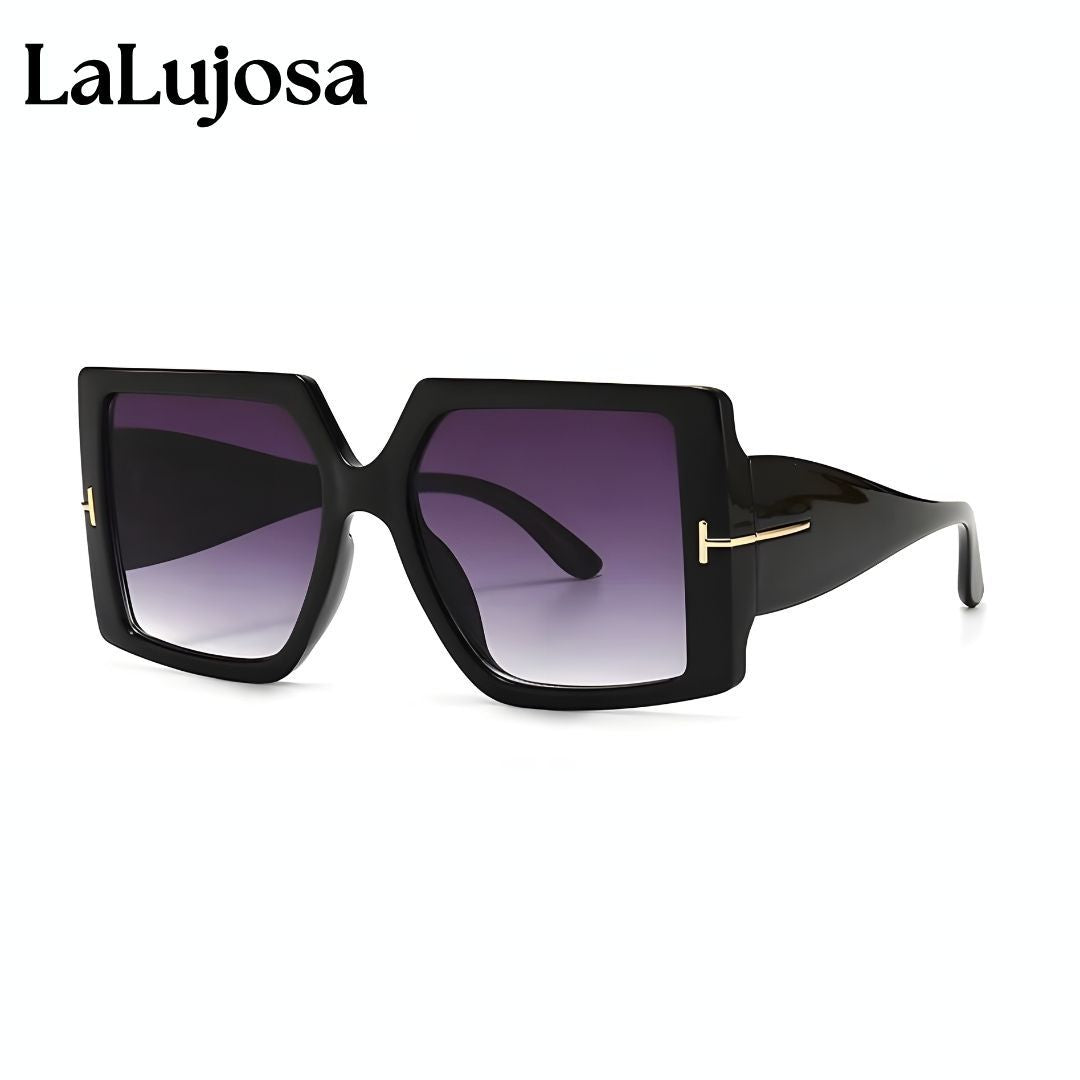 Lentes de Sol Cuadradas para Mujer Negro Lujoso Vintage