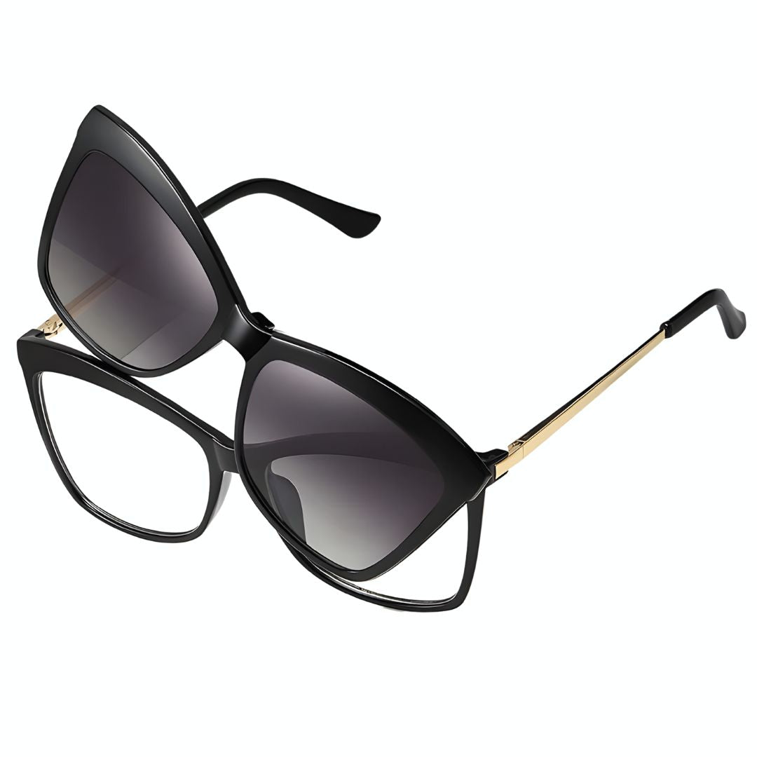 Luce con estilo con las Lentes 2 en 1 Clip-On Ojo de Gato para Mujer en Negro Elegante. Su diseño sofisticado y práctico te permite usar las lentes con o sin el clip de sol, adaptándose a cualquier ocasión.