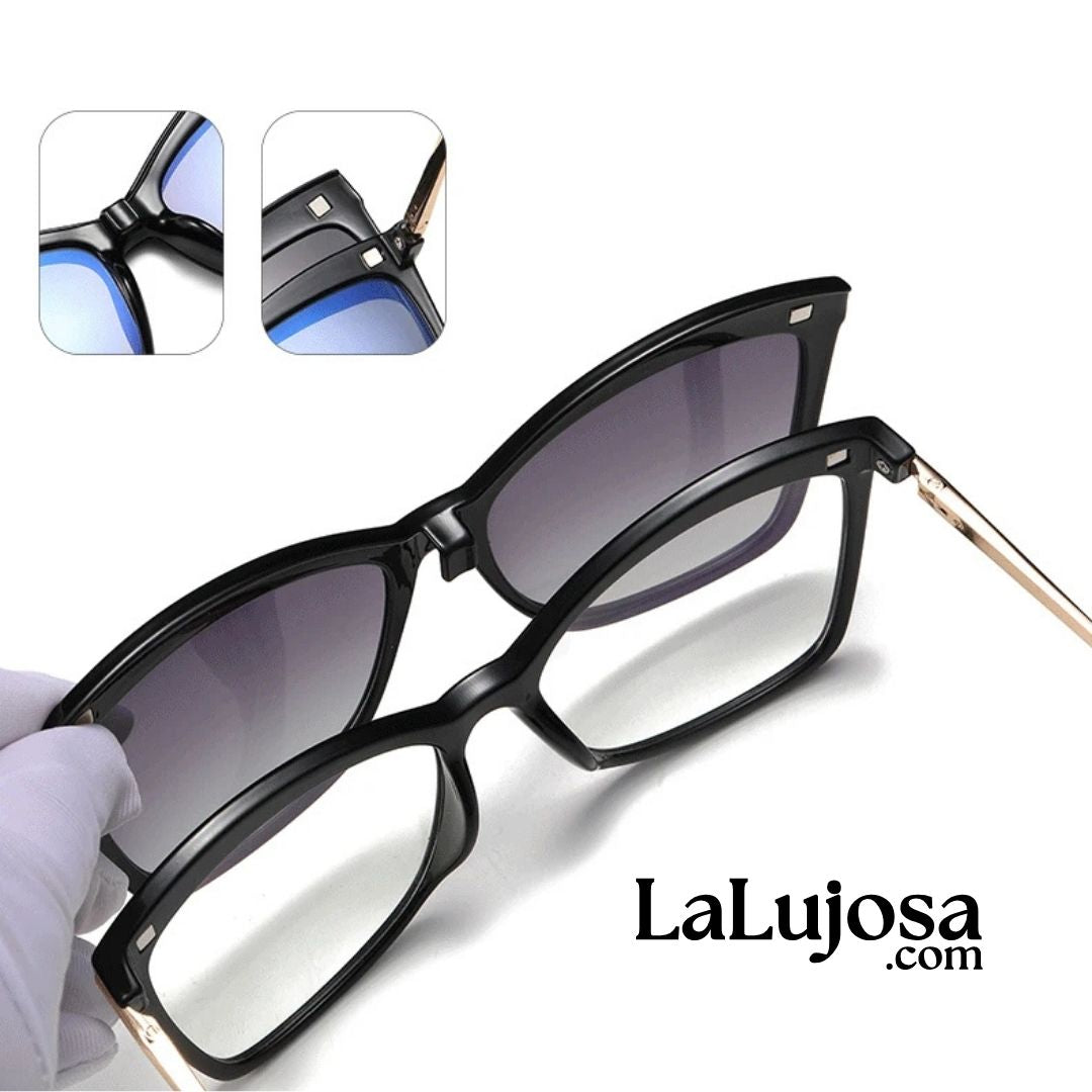 Diseño 2 en 1: Lentes con clip-on que permiten acoplar las lentes de sol fácilmente, adaptándose a tus necesidades diarias.
