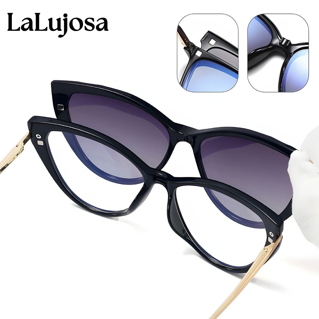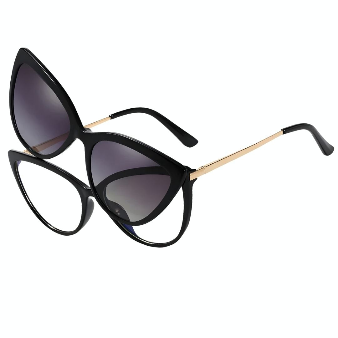 Descubre el estilo con las Lentes 2 en 1 Clip-On Ojo de Gato para Mujer en Negro Atemporal, ideales para usar todos los días. Su diseño elegante se adapta a cualquier look y te da un toque moderno.