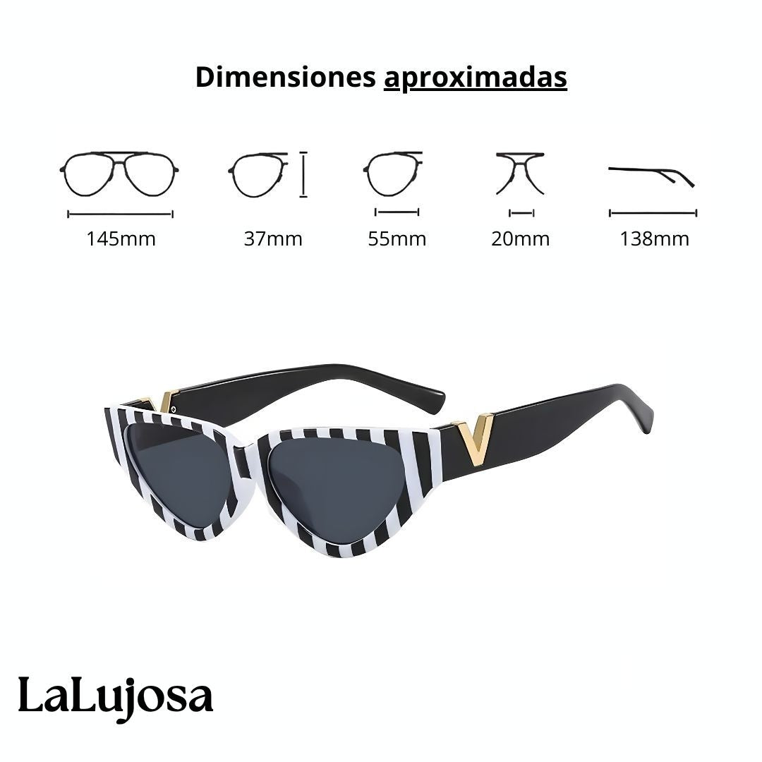 - Estilo Clásico: Diseño de ojo de gato con rayas blancas y negras para un aspecto elegante y atemporal.