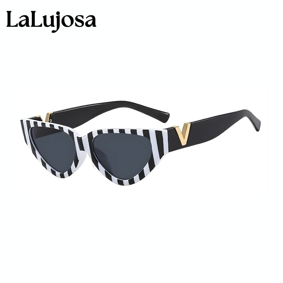 Lentes de Sol Ojo de Gato para Mujer en Rayas Blancas y Negras Elegante UV400