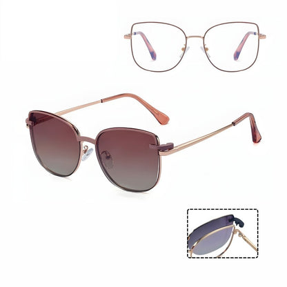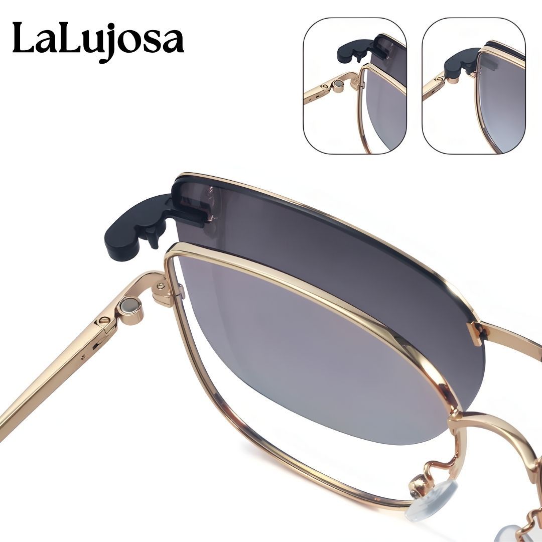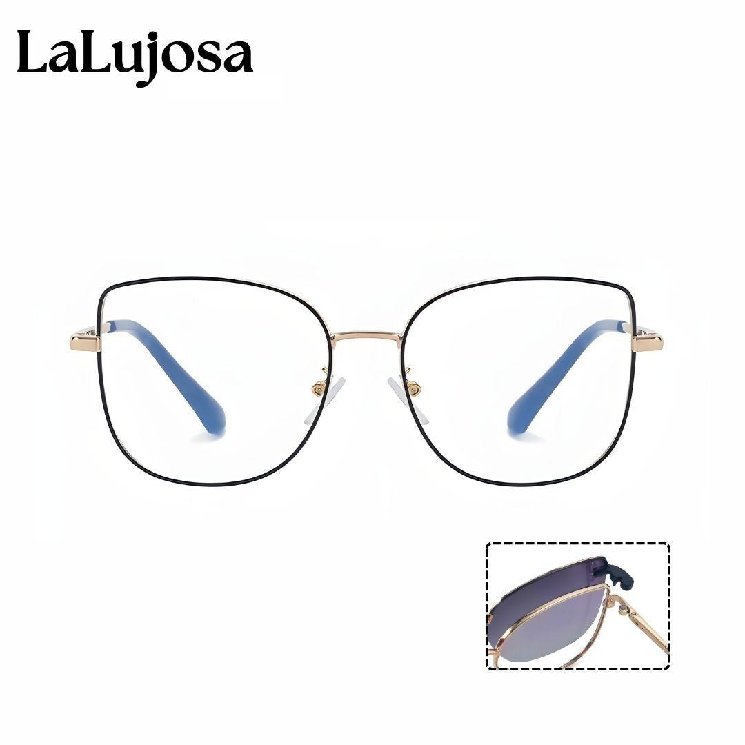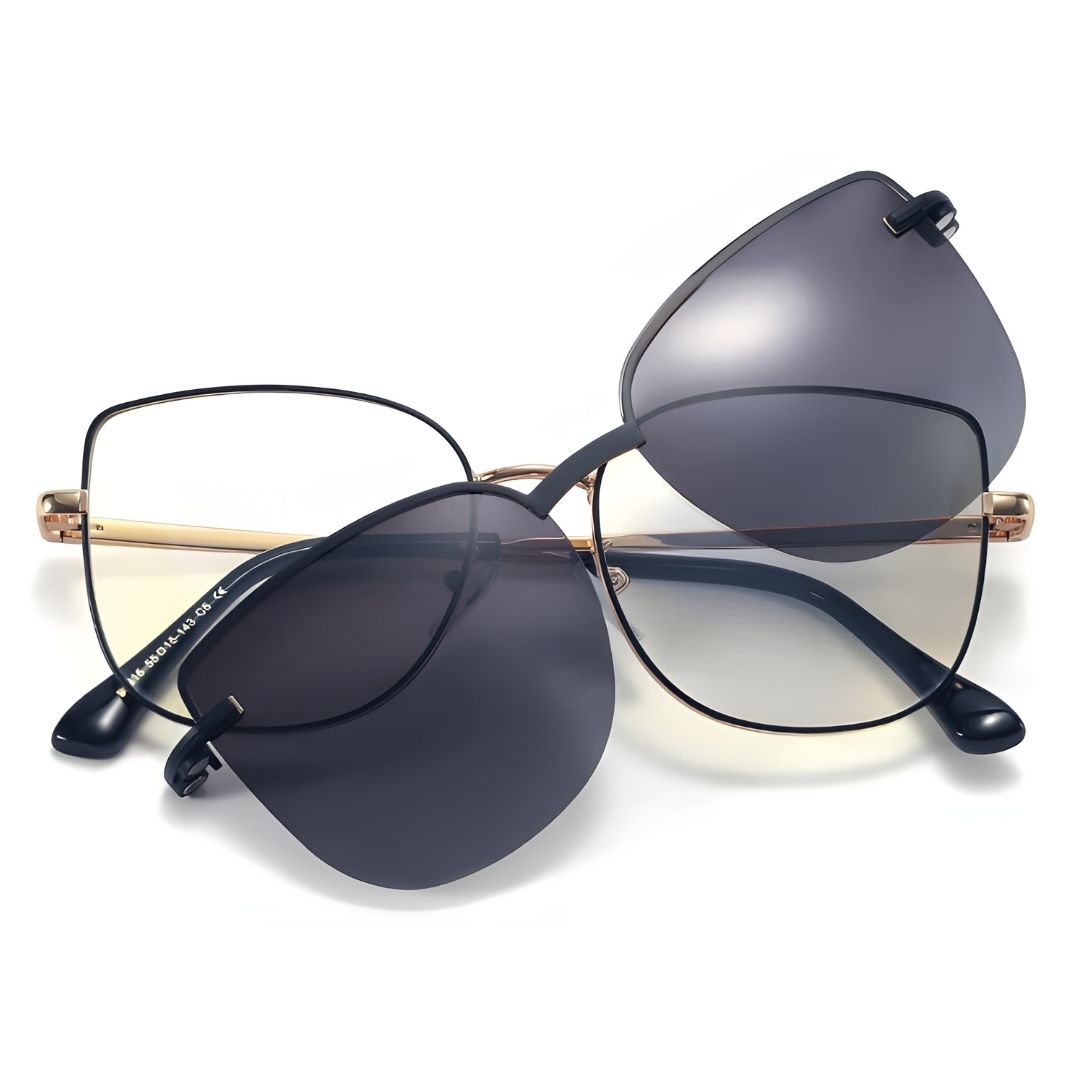 Las Lentes 2 en 1 Clip-On Cuadradas para Mujer en Negro Casual combinan estilo y practicidad para tu día a día. Su diseño moderno permite acoplar fácilmente las lentes de sol a la montura, creando un look versátil y elegante.