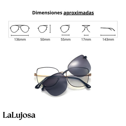 Lentes 2 en 1 Clip-On Cuadradas para Mujer en Negro Casual