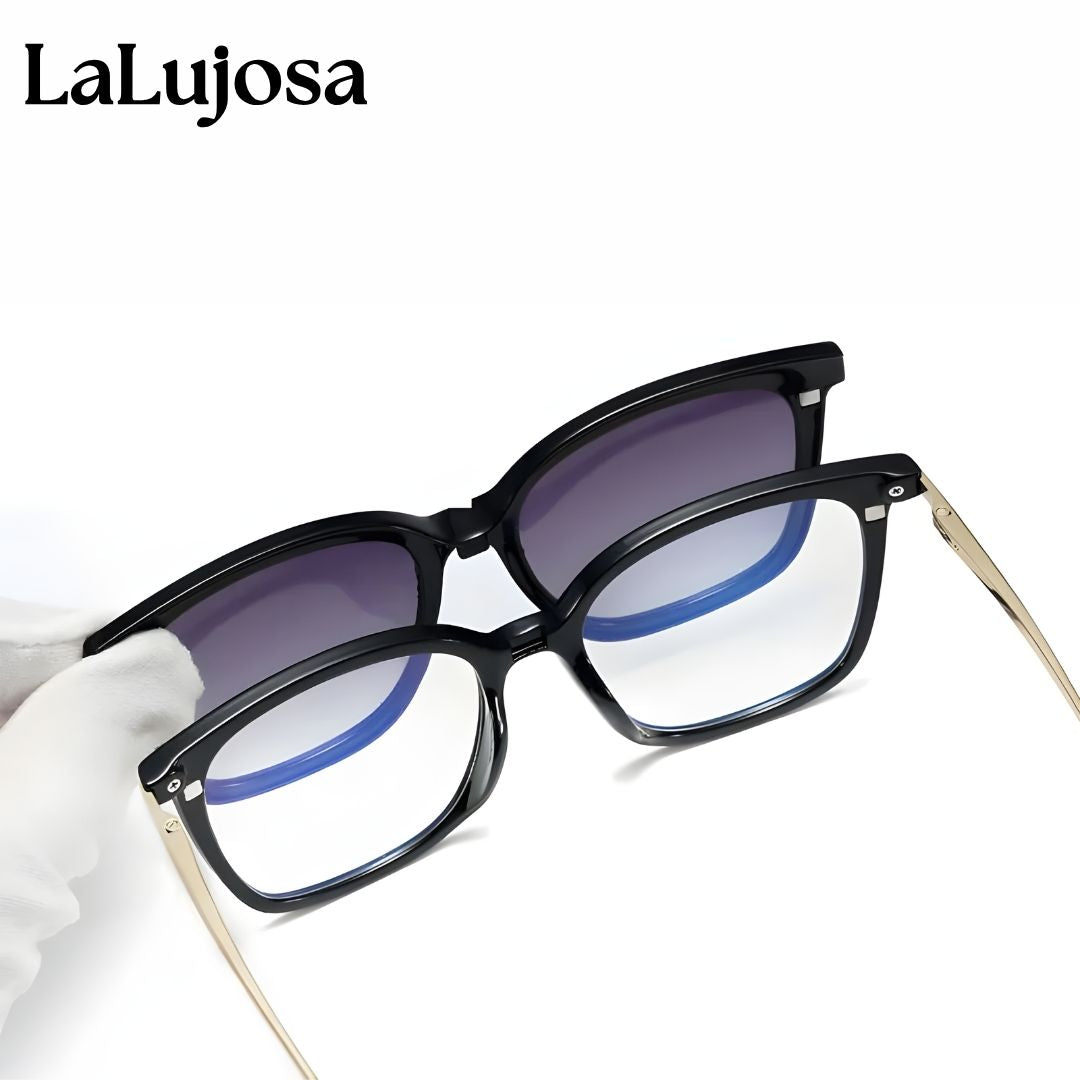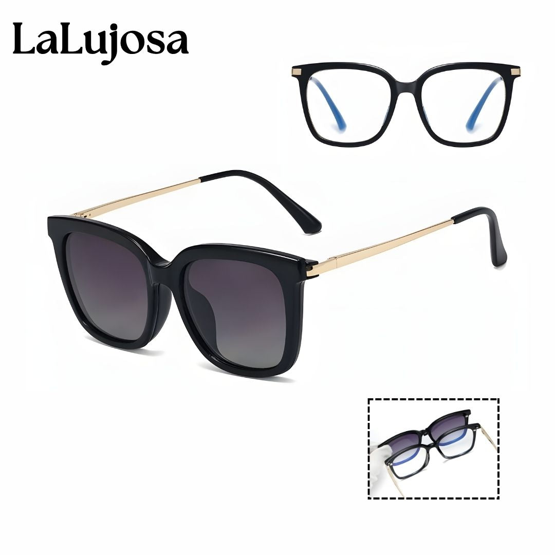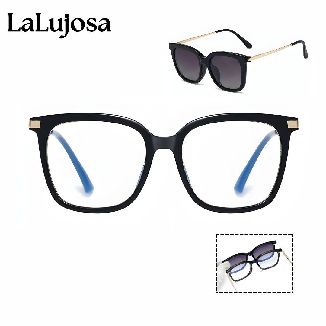 Lentes 2 en 1 cuadrados para mujer en negro con clip solar moderno