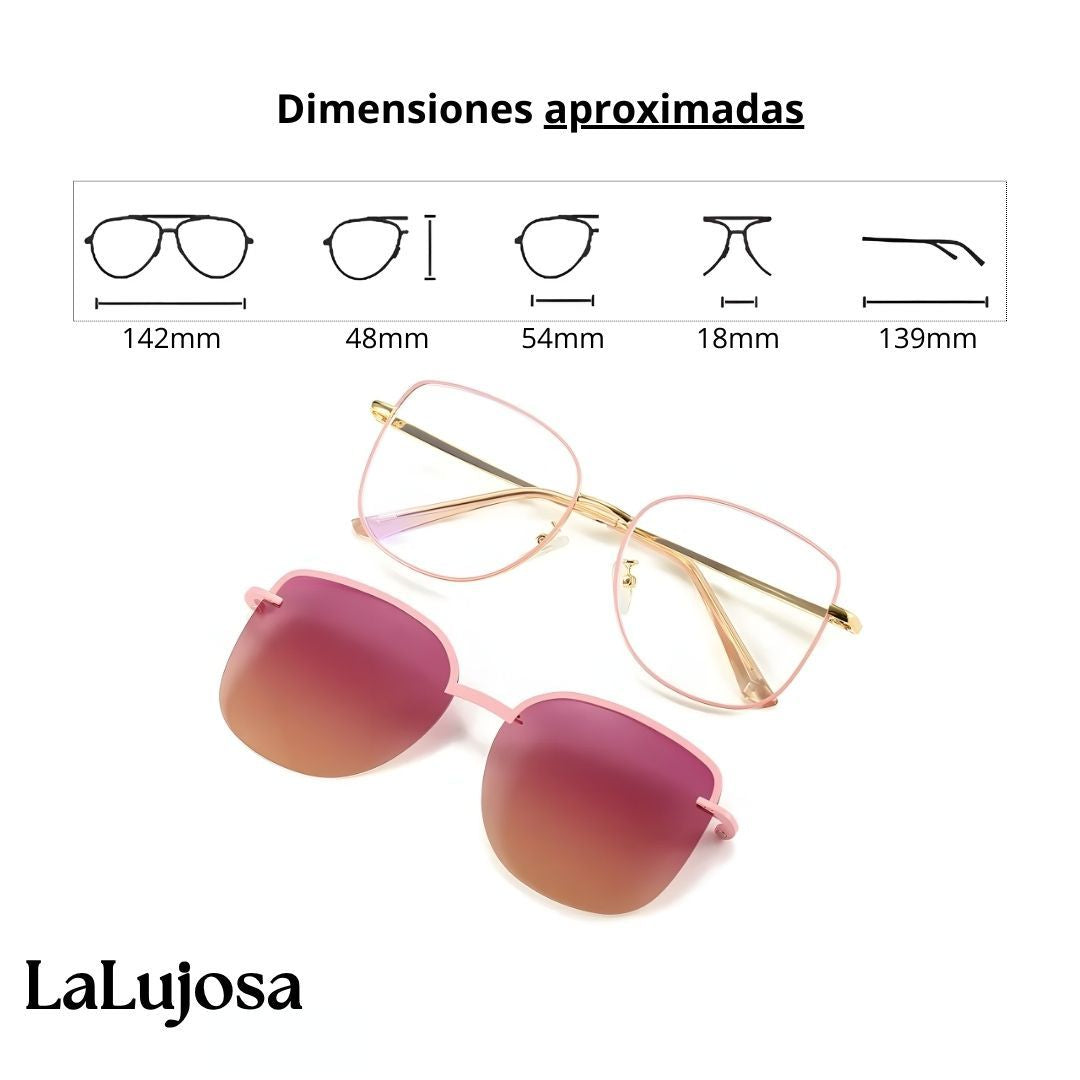 Lentes Clip-On 2 en 1 Cuadradas para Mujer en Color Fresa Lujoso