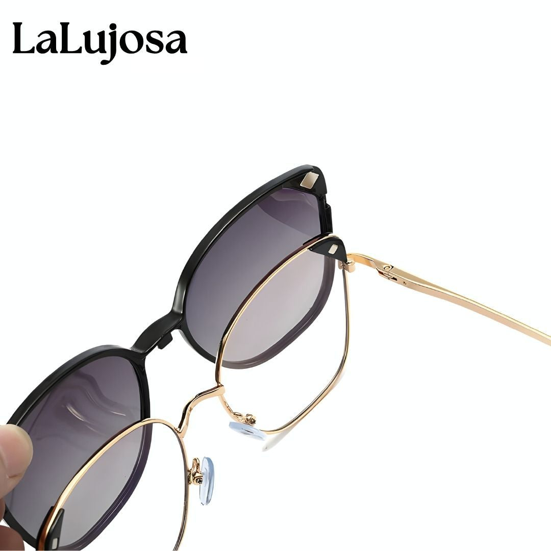 Con sus lentes magnéticas de sol clip-on, puedes transformar tu look al instante, añadiendo protección solar cuando lo necesitas.