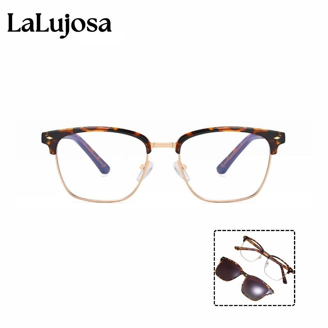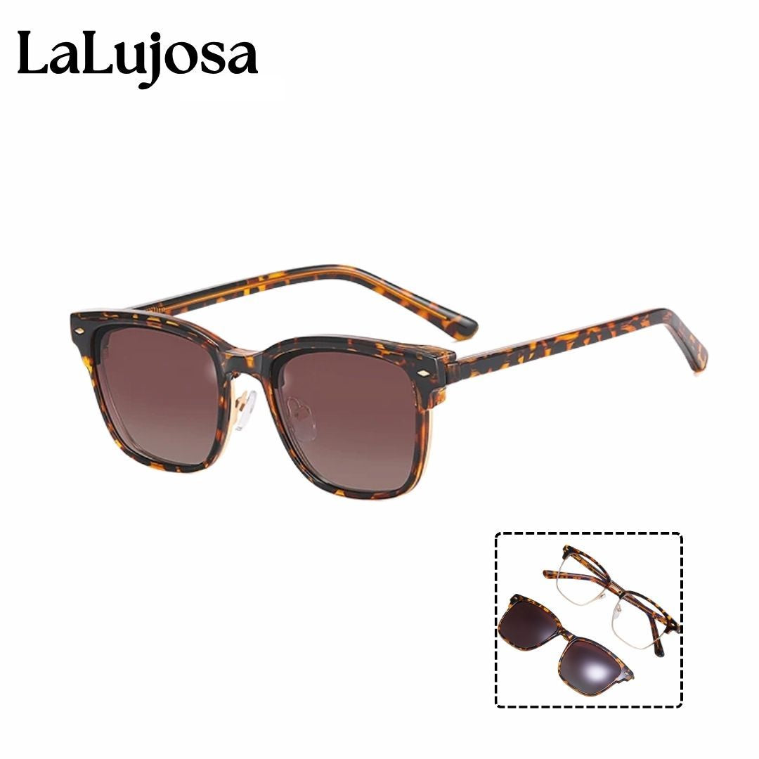 Descubre las Lentes 2 en 1 Clip-On Cuadradas para Mujer en Leopardo Clásico, perfectas para cualquier ocasión. Estas lentes combinan estilo y funcionalidad con un diseño elegante y moderno. Las lentes ofrecen protección contra la luz azul y UV400, cuidando tus ojos de las pantallas digitales y los dañinos rayos solares.